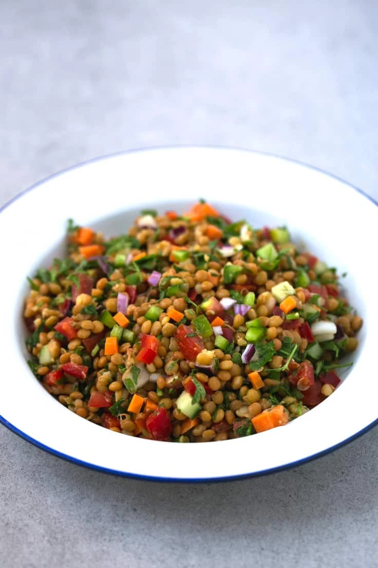 Ensalada de lentejas con crudités de verduras