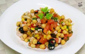 Ensalada de pasta con frutos de mar y de la huerta (atún, maíz, tomate)